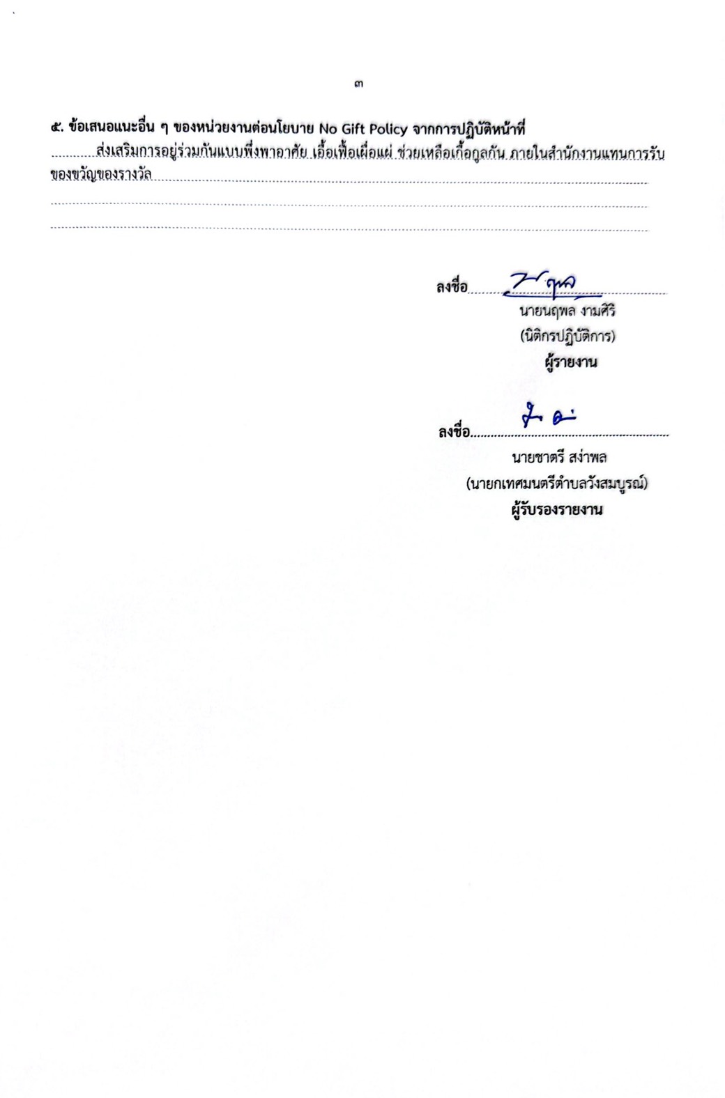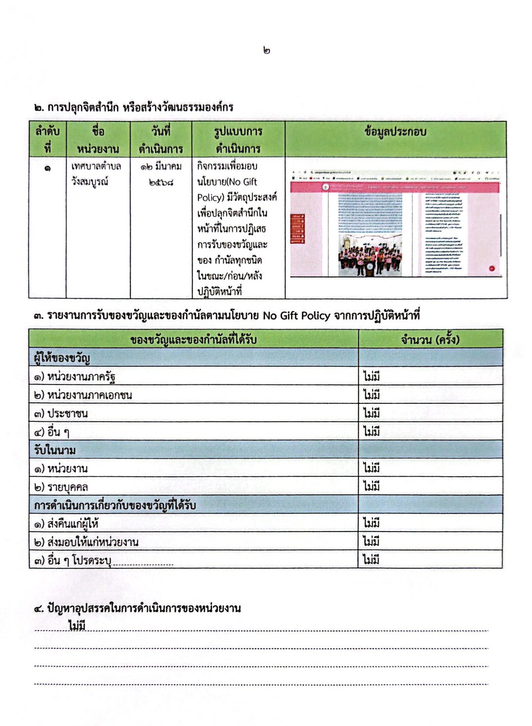 การขับเคลื่อนนโยบาย NO GIFT POLICY การเสริมสร้างความรู้เกี่ยวกับหลักเกณฑ์การรับทรัพย์สินหรือประโยชน์อื่นใดโดยธรรมจรรยาของเจ้าพนักงานของรัฐ